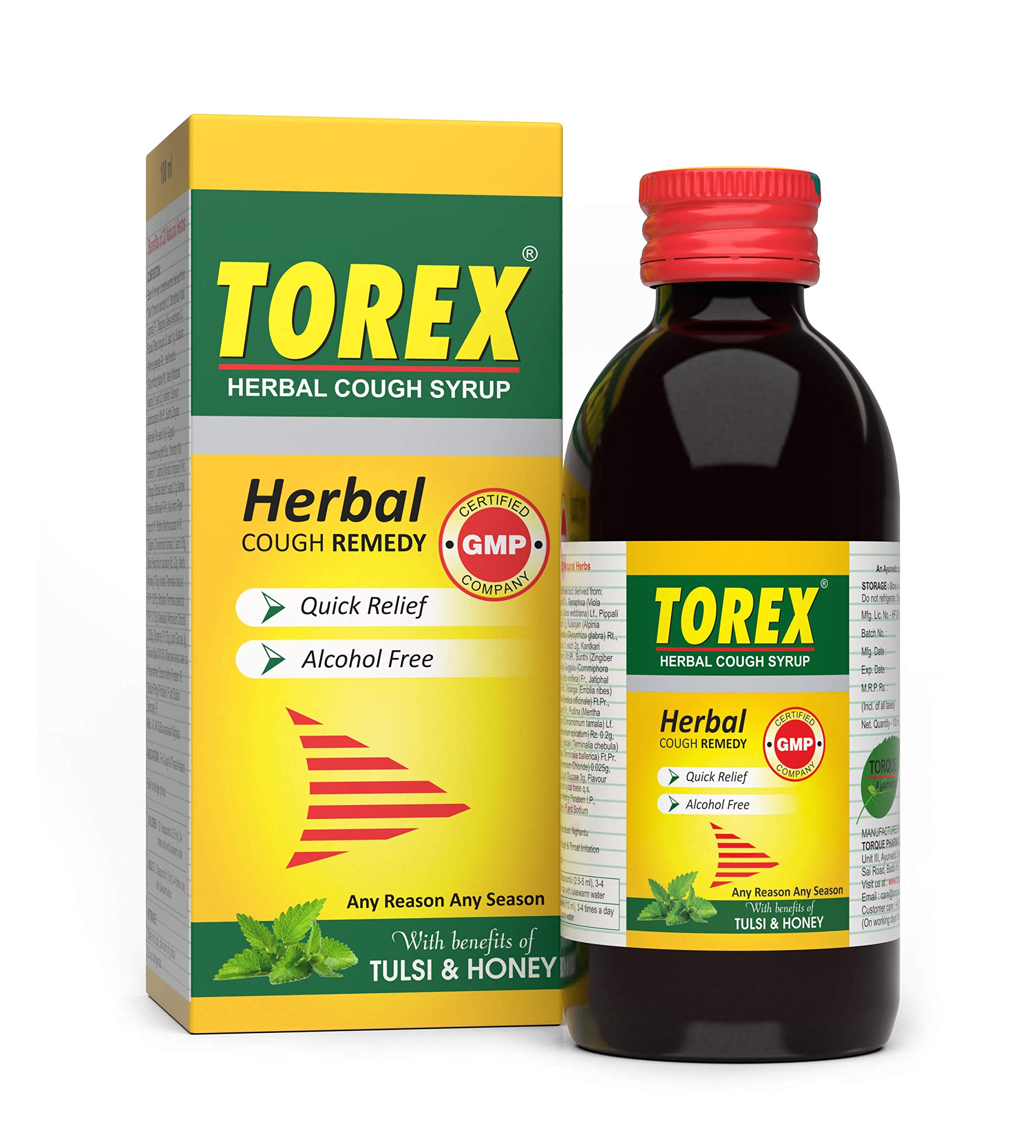 Torex Cough Syrup is a combination medicine used to treat cough. It thins the mucus in the nose and windpipe, making it easier to cough out. This medicine also relieves allergic symptoms like runny nose, watery eyes, sneezing, throat irritation.